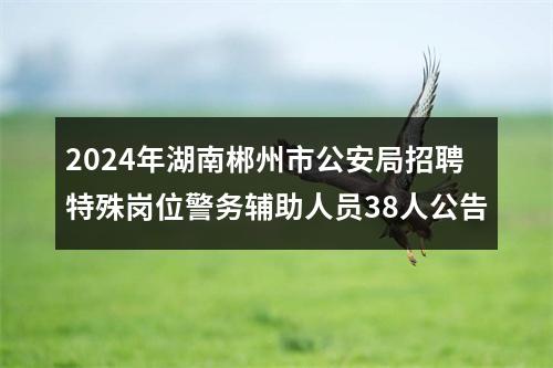 郴州市公安局共计划招聘特殊岗位警务辅助人员38名。具体招聘职位、人数、资格条件等详见《郴州市公安局2024年招聘特殊岗位警务辅助人员职位表》。