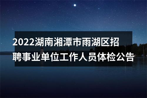 根据《2022年雨湖区公开招聘事业单位工作人员公告》要求,现将2022年雨湖区公开招聘事业单位工作人员体检有关事项公告如下: