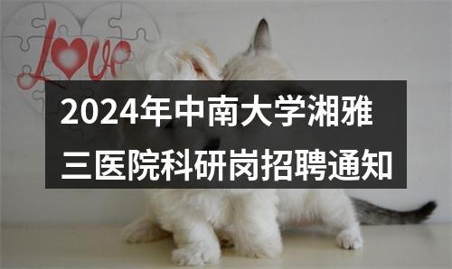【2024年中南大学湘雅三医院科研岗招聘通知】相关岗位: