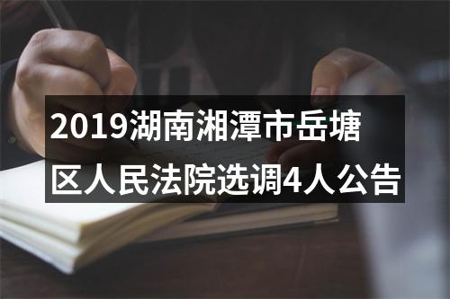 因工作需要,湘潭市岳塘区人民法院2019年面向全国法院公开选调4名工作人员。现将有关事项公告如下: