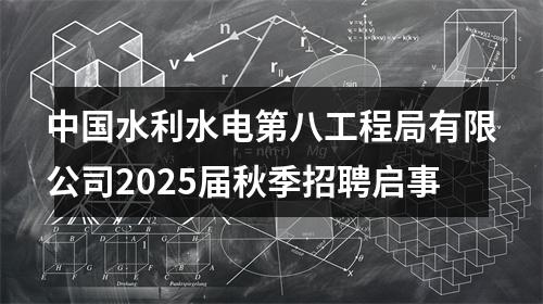 原标题:中国水利水电第八工程局有限公司2025届秋季招聘启事